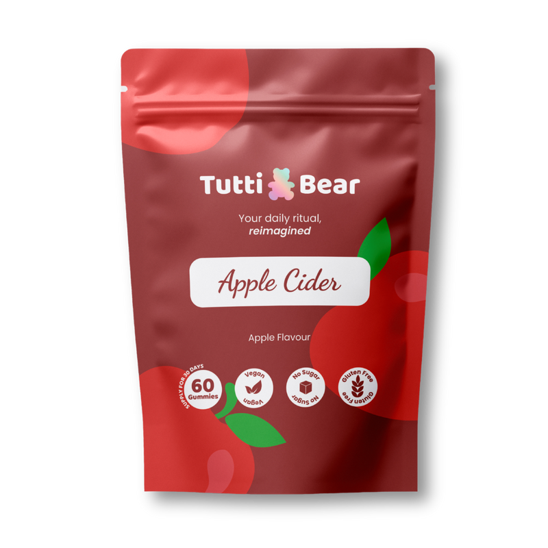 Introducing TuttiBear Apple Cider Vinegar Gummies—the delicious, modern way to support your wellness goals without the pucker. We have taken unfiltered Apple Cider Vinegar and infused it into a soft, tasty gummy enriched with Vitamin B12 and superfoods like Pomegranate and Beetroot. This powerful combination supports your digestion, boosts your energy, and helps your body naturally detoxify, all with a sweet, natural apple flavor.